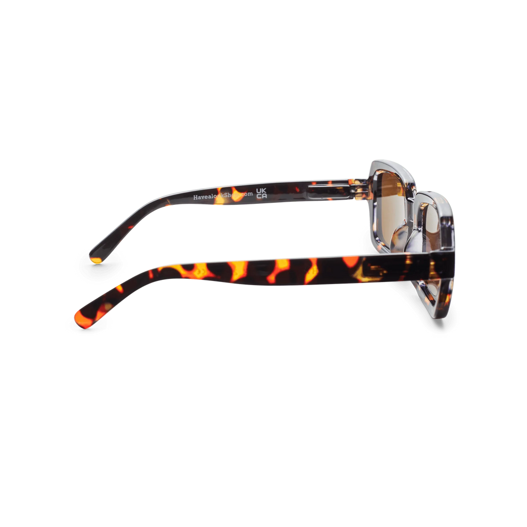Rectangular retro-style sunglasses with brown tortoiseshell frames. 'Square' by Have A Look is unquestionably an eyewear style that exudes character, featuring bold, modern retro-style rectangular frames that are surprisingly lightweight and exceptionally comfortable to wear.