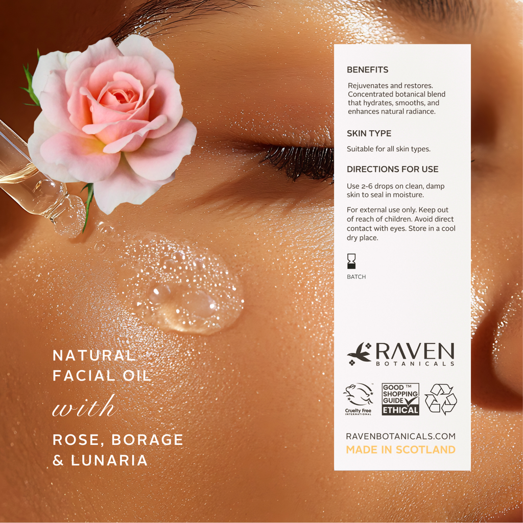 Solstice Facial Oil is an exquisite blend of some of the most effective ingredients for the rejuvenation and replenishment of dry and mature skin. UK grown bee-friendly botanicals including borage and lunaria provide a rich source of GLA and SDA, two potent anti-inflammatory acids that soothe the skin. This lightweight oil naturally improves the appearance of fine lines and wrinkles by stimulating the production of collagen and elastin as well as repairing imperfections and reducing redness.