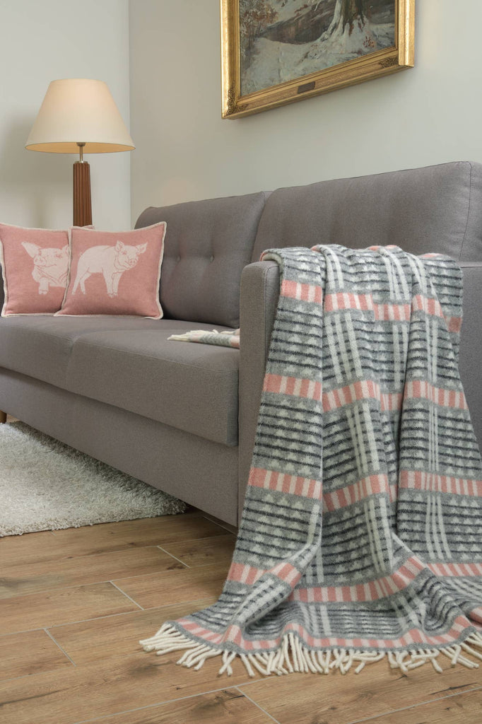 Wool Throw | Black and Pink Stripe
