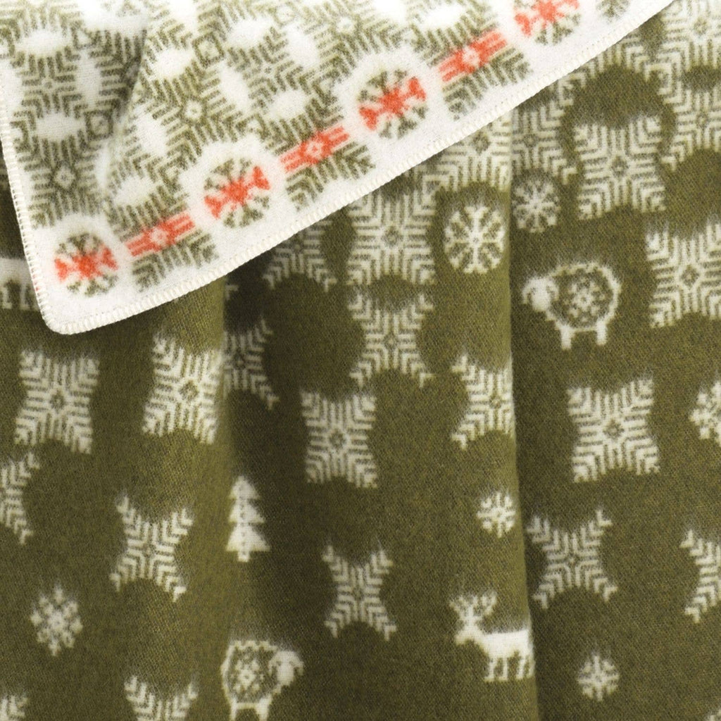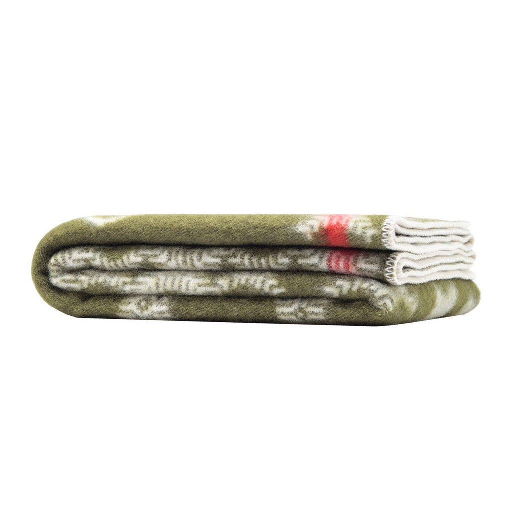 This isn’t just a blanket—it’s winter personified. Thick, woolly and sprinkled with snow, it features a winter forest where moose and sheep wander about amongst fluffy fir trees as delicate snowflakes drift gently down. Woven in a calming moss green and off-white colourway, punctuated with a splash of bold red, it’s fully reversible. This feature essentially gives you two blankets in one. Our wool blankets are never flimsy or lightweight, they’re chunky, cosy and generously sized at 180 x 130. Made from 80% wool and 20% cotton, our blankets are made for cooler seasons. Moss Green, Red and Off-White | 130 x 180 cm | 80% Wool, 20% Cotton | Machine Washable | Fully Reversible