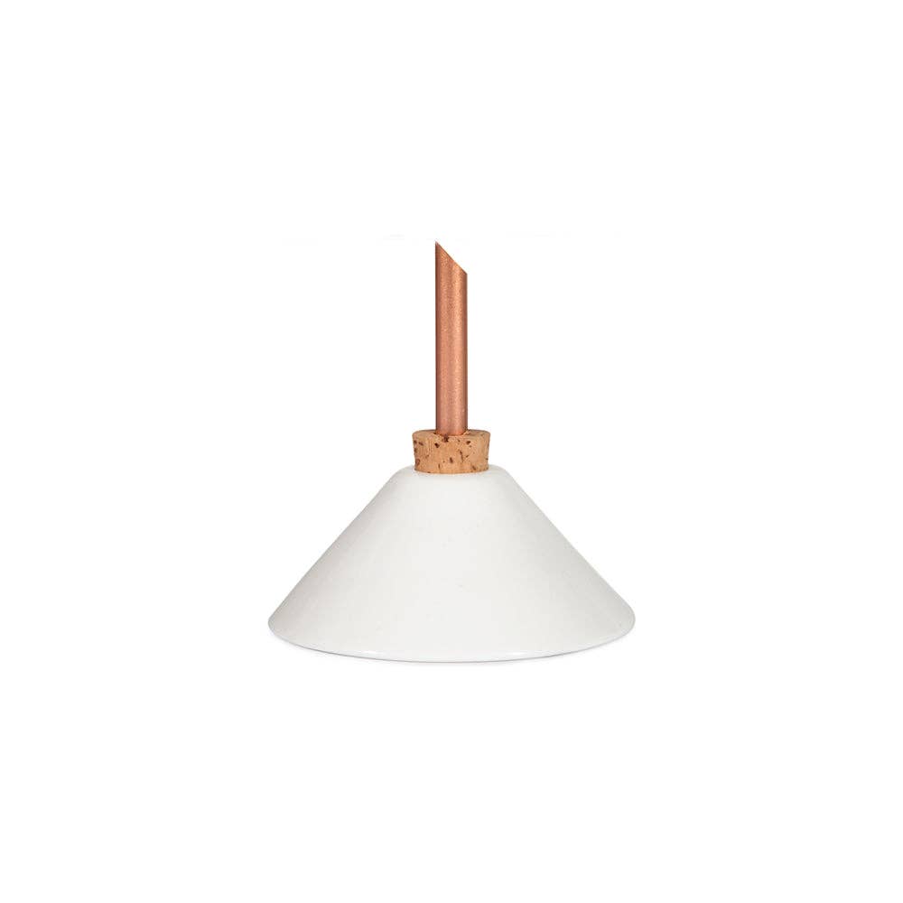 Consilium captures this concept and brings it indoors, with a small copper storm and cork neck that helps support the plant’s stem.